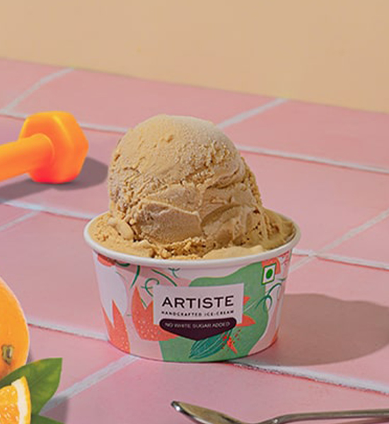 High Protein Low-Calorie Ice Cream enriched with Whey Protein and natural sugars but still Artiste at heart, rich, nourishing, and flavourful that offers Zesty Mandarin Orange, rich creamy taste but above all healthy.