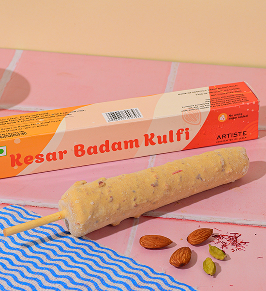 The ‘variant’ of a cult classic in the Artiste universe. Kesar badam kulfi made with rich condensed milk & almonds sweetened with honey and jaggery.